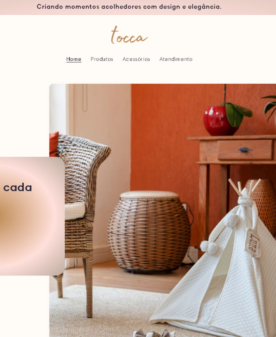 O proprietário da Tocca solicitou o desenvolvimento do site para destacar e facilitar a venda de suas tocas premium para pets.
